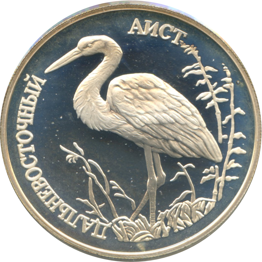Описание: Далекосхідний лелека на тлі рослин, напис по краю: «ДАЛЬНЕВОСТОЧНЫЙ АИСТ» (ДАЛЕКОСХІДНИЙ ЛЕЛЕКА).