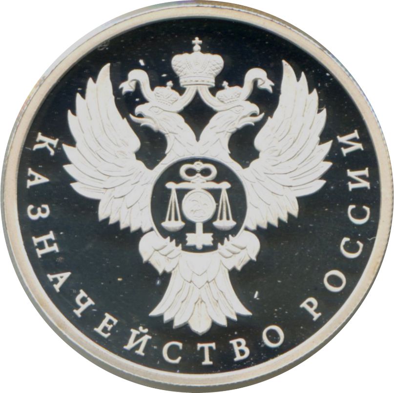 Описание: Рельєфне зображення державного герба Російської Федерації. Є написи: РОССИЙСКАЯ ФЕДЕРАЦИЯ (РОСІЙСЬКА ФЕДЕРАЦІЯ), БАНК РОССИИ (БАНК РОСІЇ), номінал монети — 1 РУБЛЬ (1 РУБЛЬ) і рік — 2017, позначення металу відповідно до періодичної системи елементів Д.І. Менделєєва, проба, торгова марка Московського монетного двору та вміст дорогоцінного металу.