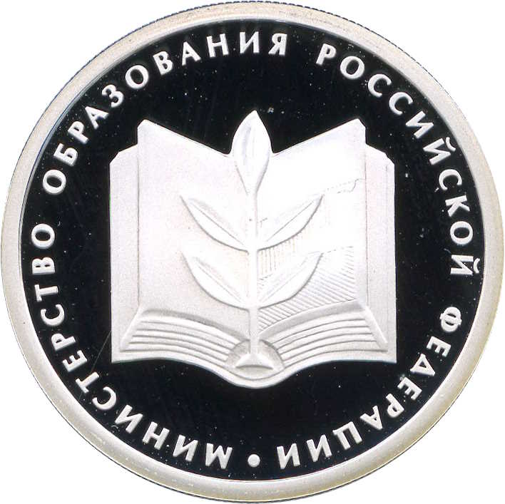 Описание: У центрі — логотип Міністерства освіти Російської Федерації, напис по краю: «МИНИСТЕРСТВО ОБРАЗОВАНИЯ РОССИЙСКОЙ ФЕДЕРАЦИИ» (МІНІСТЕРСТВО ОСВІТИ РОСІЙСЬКОЇ ФЕДЕРАЦІЇ).