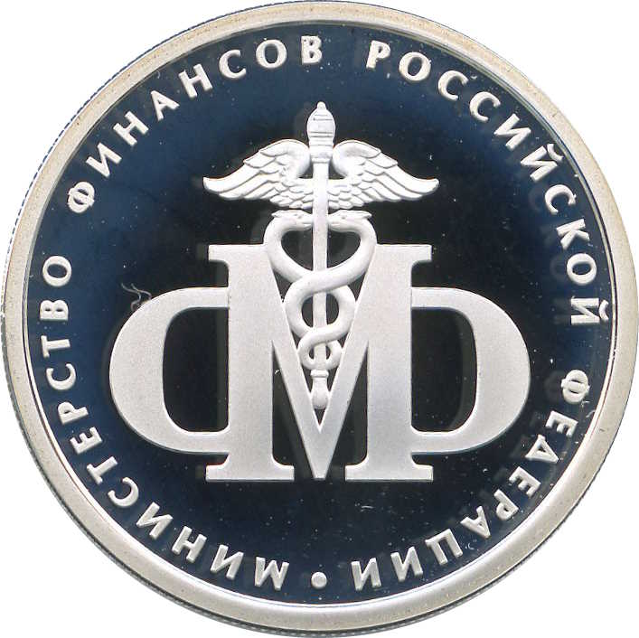 Описание: У центрі — емблема логотипу Міністерства фінансів Російської Федерації, напис по краю «МИНИСТЕРСТВО ФИНАНСОВ РОССИЙСКОЙ ФЕДЕРАЦИИ» (МІНІСТЕРСТВО ФІНАНСІВ РОСІЙСЬКОЇ ФЕДЕРАЦІЇ).