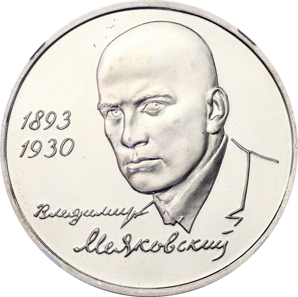 Описание: Портрет В. В. Маяковського, ліворуч — дати в рядках «1893» і «1930», під ним — факсимільний підпис поета.