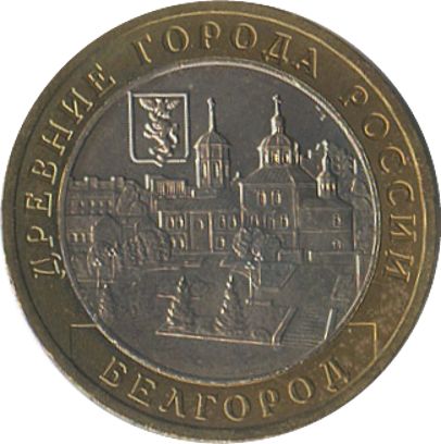 Описание: Зображення панорами міста, вгорі ліворуч — герб Бєлгорода. Написи по краю: вгорі — «ДРЕВНИЕ ГОРОДА РОССИИ» (СТАРОВИННІ МІСТА РОСІЇ), внизу — «БЕЛГОРОД» (БЄЛГОРОД).
