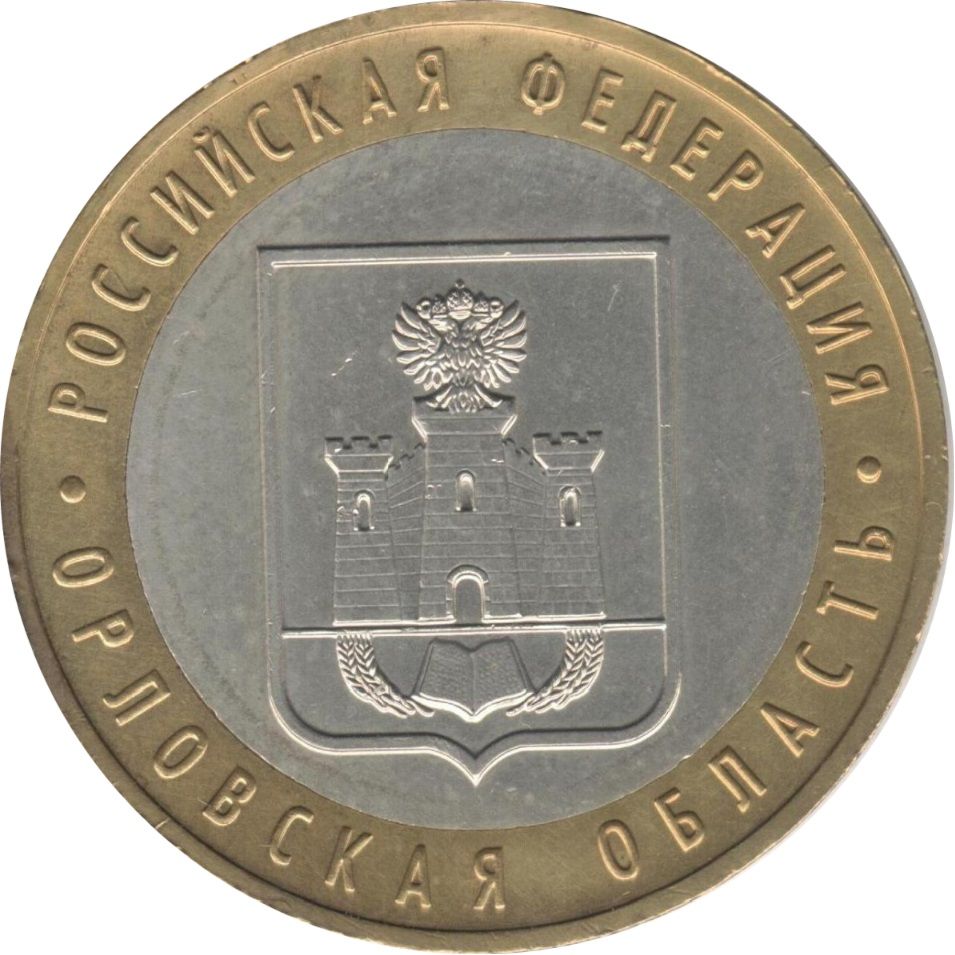 Описание: Зображення герба Орловської області. Написи по краю: вгорі — «РОССИЙСКАЯ ФЕДЕРАЦИЯ» (РОСІЙСЬКА ФЕДЕРАЦІЯ), внизу — «ОРЛОВСКАЯ ОБЛАСТЬ» (ОРЛОВСЬКА ОБЛАСТЬ).