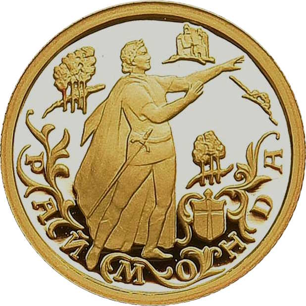 Описание: Зображення лицаря Жана де Брієна. Напис внизу вздовж краю: «РАЙМОНДА» (RAYMONDA).