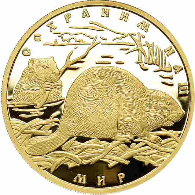 Название: 100 рублів (європейський бобер; золото 999 проби)