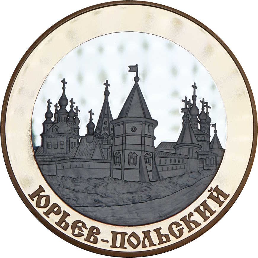 Описание: У центрі диска – монастир Святого Архангела Михаїла. Напис внизу на кільці вздовж краю – «ЮРЬЕВ-ПОЛЬСКИЙ» (ЮР’ЄВ-ПОЛСЬКИЙ).