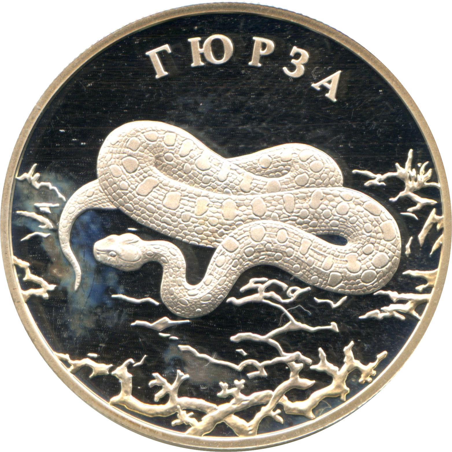 Описание: Рельєфне зображення Гюрзи на тлі овочів, зверху — напис по краю: «ГЮРЗА» (GJURSA).