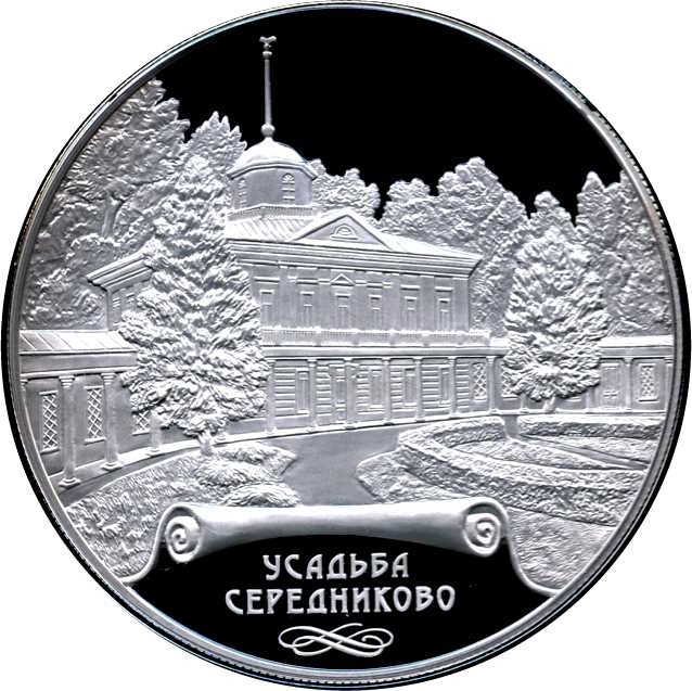 Описание: Рельєфне зображення головної будівлі маєтку, оточеного деревами. Внизу, під стилізованим зображенням сувою, напис «УСАДЬБА СЕРЕДНИКОВО» («МАТИМ СЕРЕДНИКОВО»).