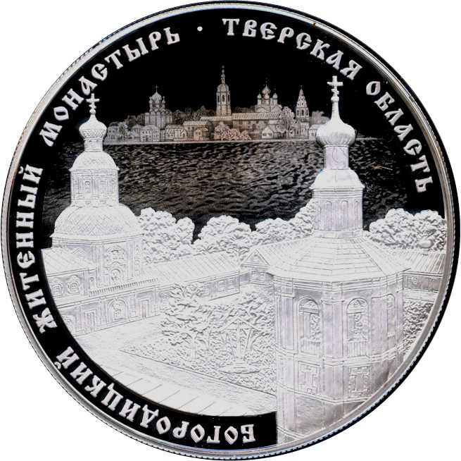 Описание: На дзеркальному полі диска рельєфне зображення Житенського монастиря з панорамою міста Осташкова та озера Селігер на тлі, по краю написи, розділені крапкою «БОГОРОДИЦКИЙ ЖИТЕННЫЙ МОНАСТЫРЬ» (ЖИТЕНСЬКИЙ МОНАСТИР БОЖОЇ МАТЕРІ) та «ТВЕРСКАЯ ОБЛАСТЬ» (ТВЕРСЬКА ОБЛАСТЬ).