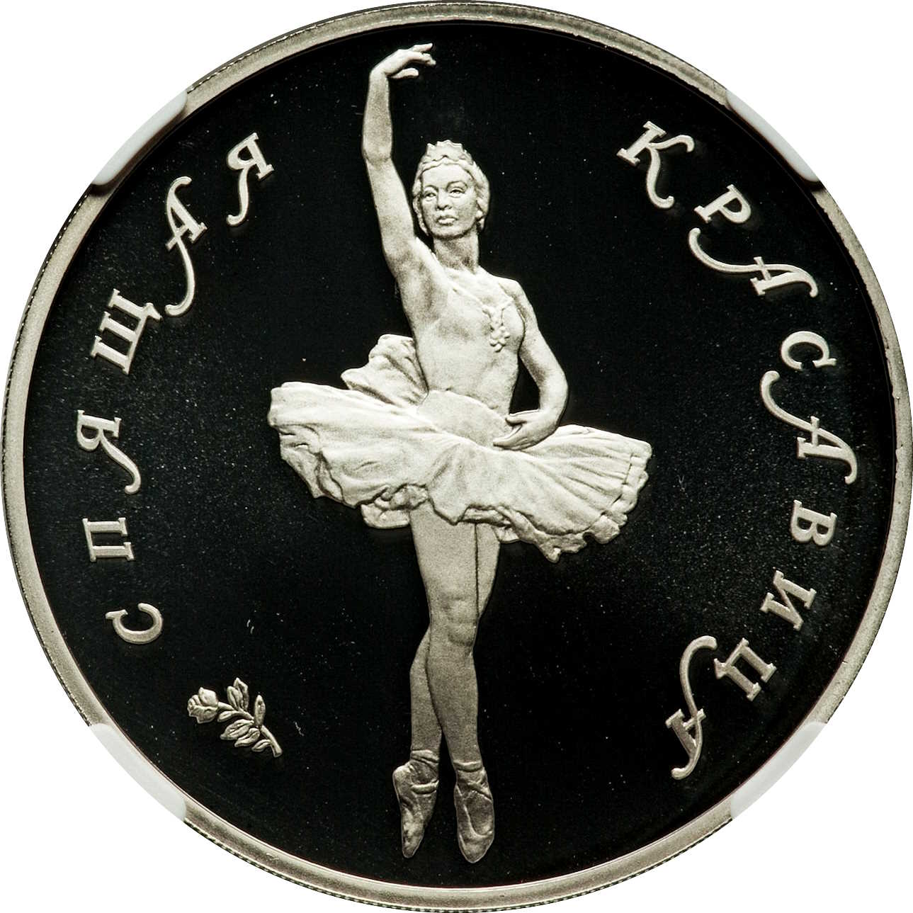 Описание: Танцююча балерина та квітка, зліва направо — напис по краю: «СПЯЩАЯ КРАСАВИЦА» (СПЛЯЧА КРАСУНЯ).