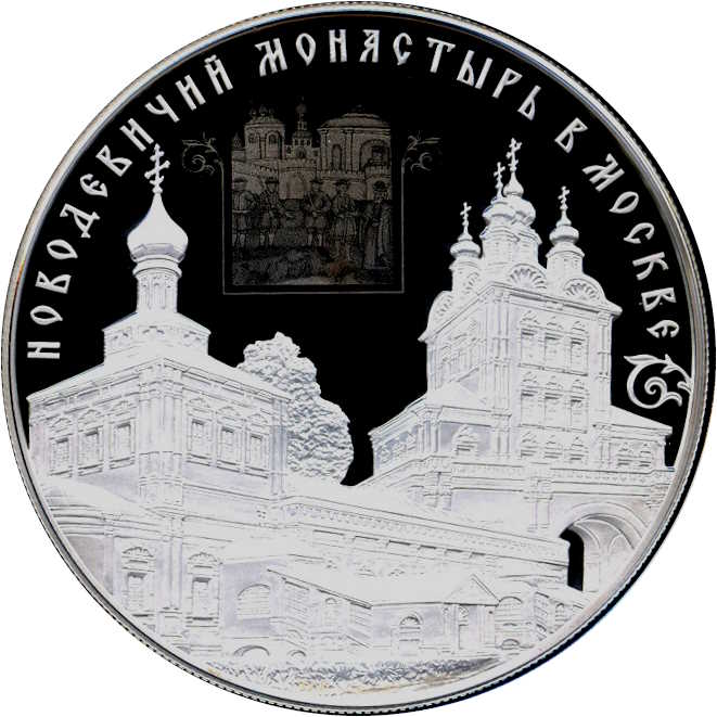 Описание: Рельєфні зображення церков Успіння Пресвятої Богородиці та Преображення Господнього. По периметру зверху є напис — «НОВОДЕВИЧИЙ МОНАСТИР В МОСКВЕ» (НОВОДЕВИЧИЙ МОНАСТИР В МОСКВЕ) і мініатюра знизу;