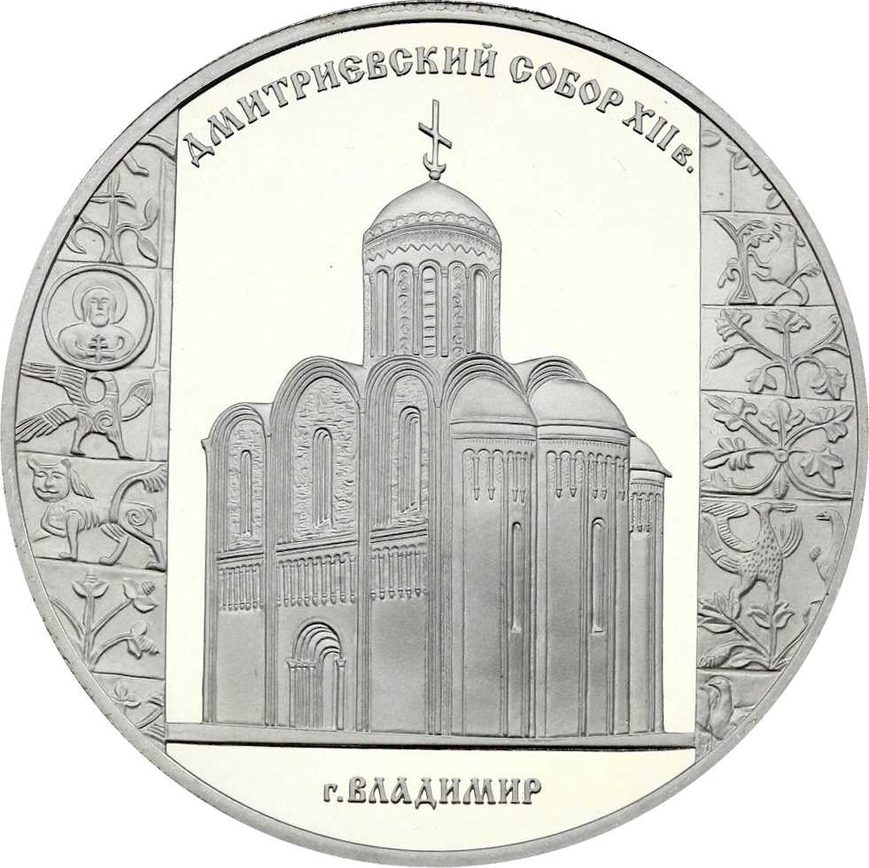 Описание: У центрі — собор Святого Димитрія, праворуч і ліворуч від нього — матові зображення фрагментів різьблення по каменю, зверху — напис по краю: «ДМИТРИЕВСКИЙ СОБОР XII в.». (СОБОР СВЯТОГО ДЕМЕТРІЯ XII століття), внизу - напис у рядку: «г. ВЛАДИМИР» (МІСТО ВЛАДИМИР).