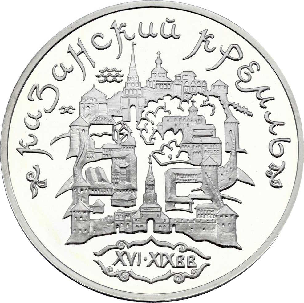 Описание: Панорамний вид архітектурних пам'яток Казанського Кремля. Написи по краю: вгорі — «КАЗАНСКИЙ КРЕМЛЬ» (КАЗАНСЬКИЙ КРЕМЛЬ), внизу — «XVI-XIX вв.» (XVI-XIX століття).
