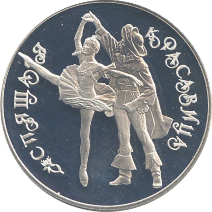 Описание: У центрі — дует, що виконує па-де-де з першого акту, напис по краю зліва направо — «СПЯЩАЯ КРАСАВИЦА» (СПЛЯЧА КРАСУНЯ).