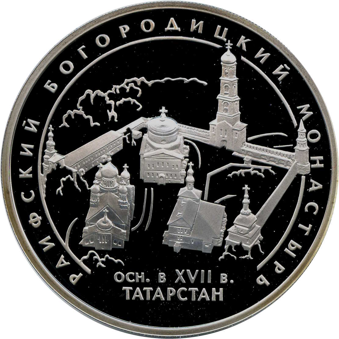 Описание: Вид на Раїфський Богородицький монастир, нижче — напис у два рядки: «ОСН. в XVII в. ТАТАРСТАН» (ЗАСНОВАНО в XVII ст. ТАТАРСТАН). Напис по краю – «РАИФСКИЙ БОГОРОДИЦКИЙ МОНАСТЫРЬ» (РАЙФСЬКИЙ БОГОРОДИЦЬКИЙ МОНАСТИРЬ).