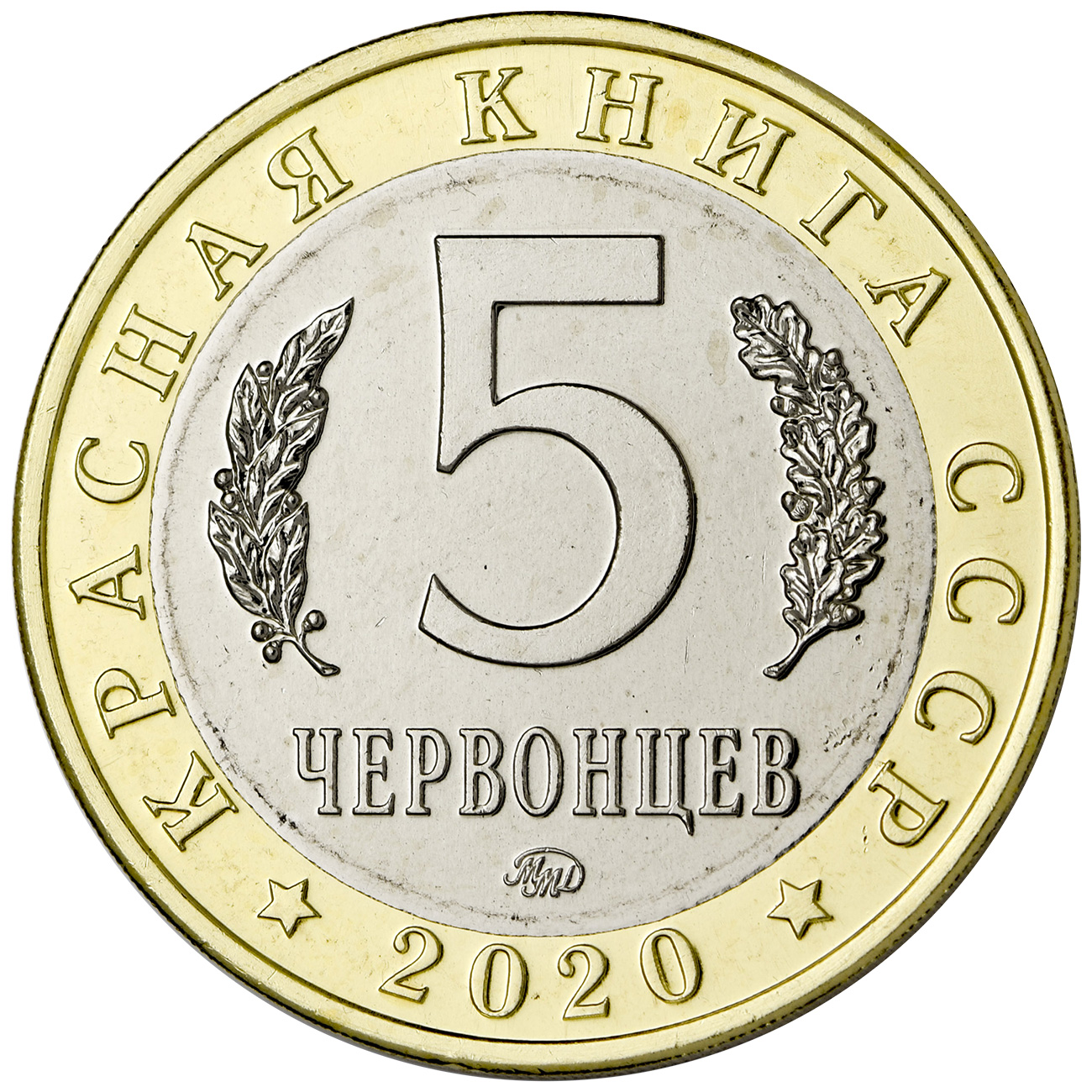 Гурт: З насічкою та написом (• ММД • 5 ЧЕРВОНЦЕВ КРАСНАЯ КНИГА СССР)