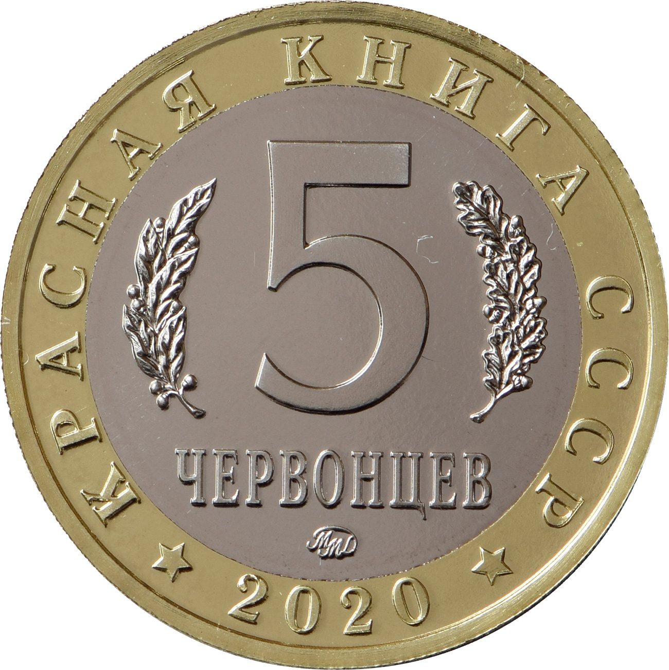 Гурт: З насічкою та написом (• ММД • 5 ЧЕРВОНЦЕВ КРАСНАЯ КНИГА СССР)