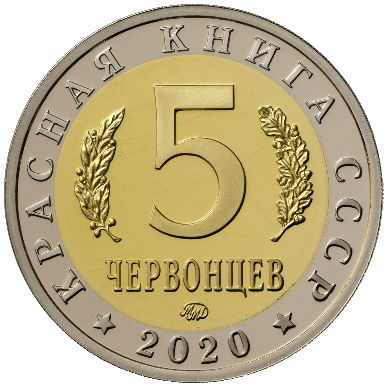 Гурт: З насічкою та написом (ММД • 5 ЧЕРВОНЦЕВ КРАСНАЯ КНИГА СССР •)