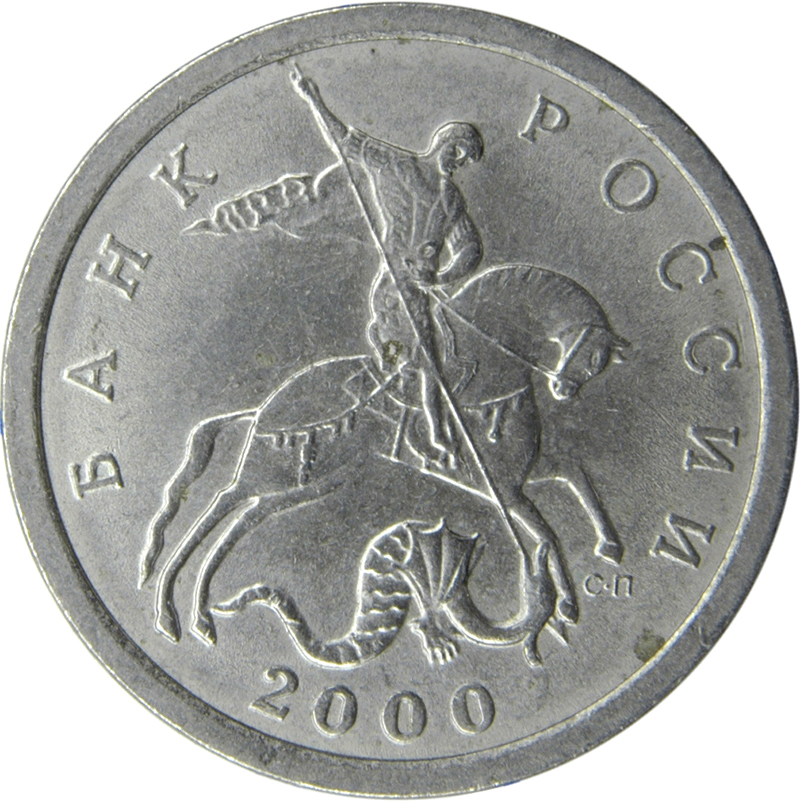 Описание: У центрі — рельєфне зображення Святого Георгія Побідоносця на коні, який вбиває змію списом; праворуч внизу, під передньою копитою коня — кириличні літери М (Москва) або С-П (Санкт-Петербург), що вказують на монетний двір-виробника; зверху зліва направо — напис по краю: «БАНК РОССИИ» (БАНК РОСІЇ), розділений фігурою Святого Георгія Побідоносця; нижче під зображенням змія — рік випуску.