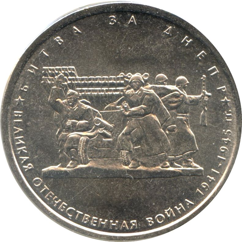 Описание: Рельєфне зображення фрагмента меморіального комплексу Національного музею історії Великої Вітчизняної війни 1941-1945 рр. у Києві, по краю – написи, розділені двома зірочками, зверху: «БИТВА ЗА ДНЕПР», знизу: «ВЕЛИКАЯ ОТЕЧЕСТВЕННАЯ ВОЙНА 1941-1945 гг.» (ВЕЛИКА ВІЙНА 1941-1945 рр.).