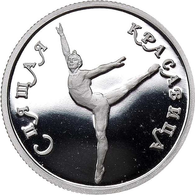 Описание: У центрі — балетний танцюрист, зліва направо — напис по краю: «СПЯЩАЯ КРАСАВИЦА» (СПЛЯЧА КРАСУНЯ).