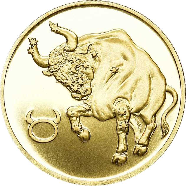 Описание: Зображення бика на тлі зірок, ліворуч — знак зодіакального сузір'я Тельця.