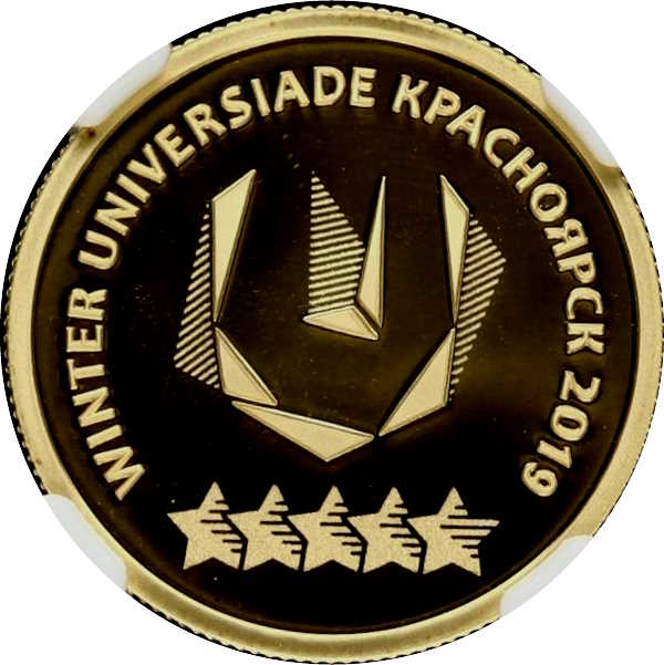 Описание: Рельєфне зображення логотипу 29-ї Зимової Універсіади. Напис по колу означає «ЗИМОВА УНІВЕРСІАДА КРАСНОЯРСЬК 2019».