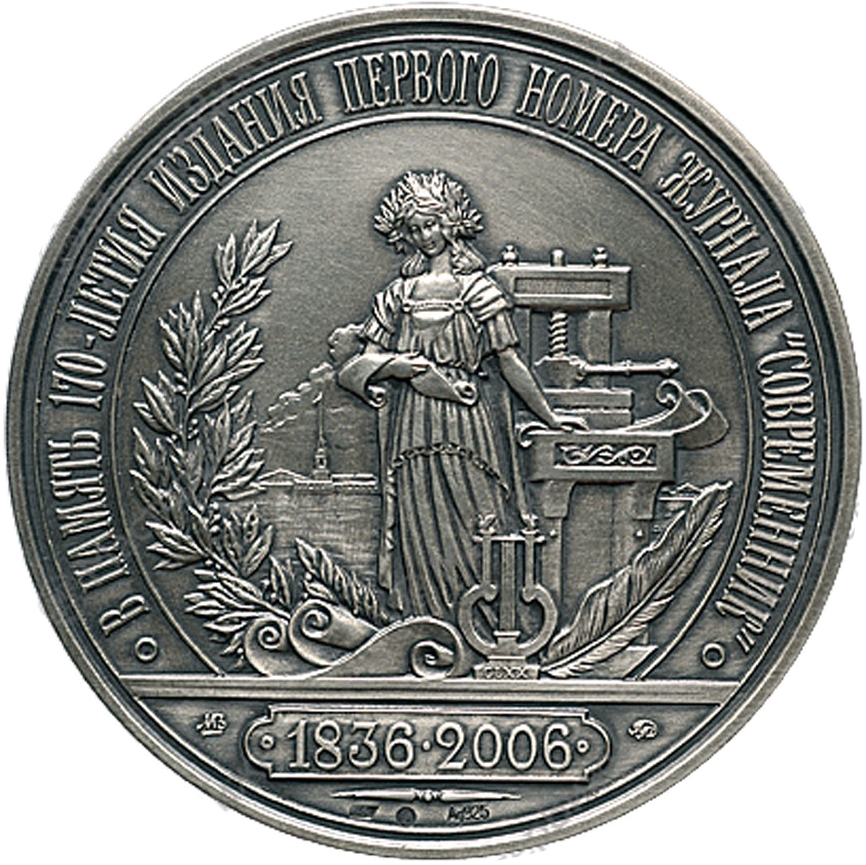 Медаль — 170-річчя виходу першого номера журналу «Современник»