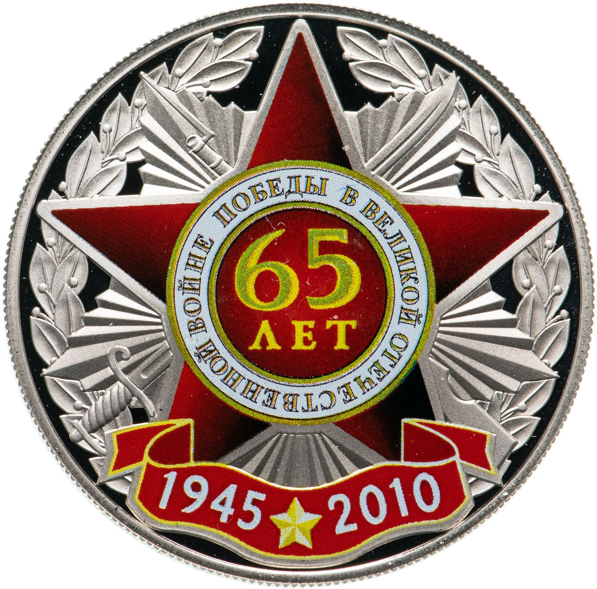 Описание: Кольоровий орден Вітчизняної війни, центральна частина якого була замінена: • Замість зображення серпа і молота — напис «65 років» • Замість напису «Вітчизняна війна» — напис «Перемога у Великій Вітчизняній війні»