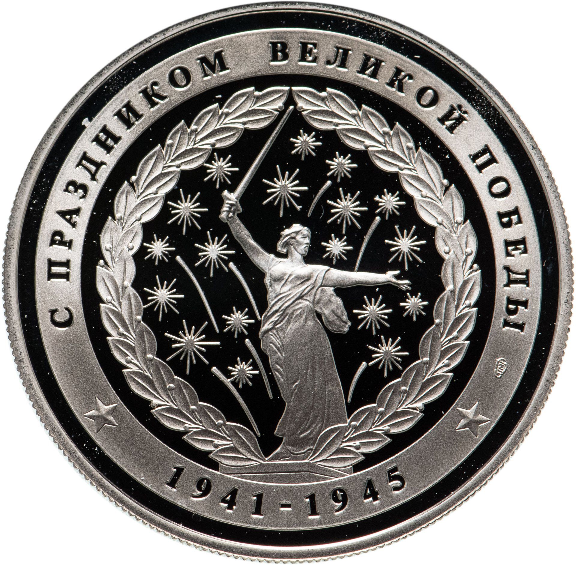 Описание: У центрі: пам'ятник «Батьківщина-мати» на Мамаєвому кургані у Волгограді, обрамлений оливковою гілкою. По краю — кільце з написом.
