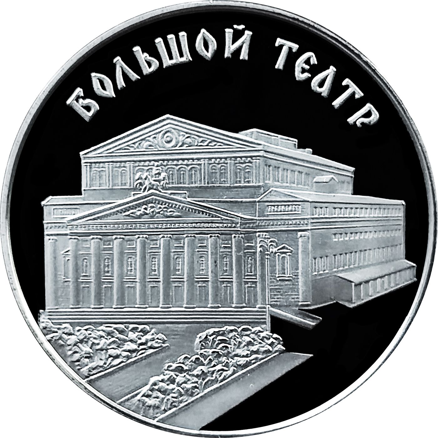 Описание: На монеті зображено фасад Большого театру, одного з головних культурних символів Росії та Москви.