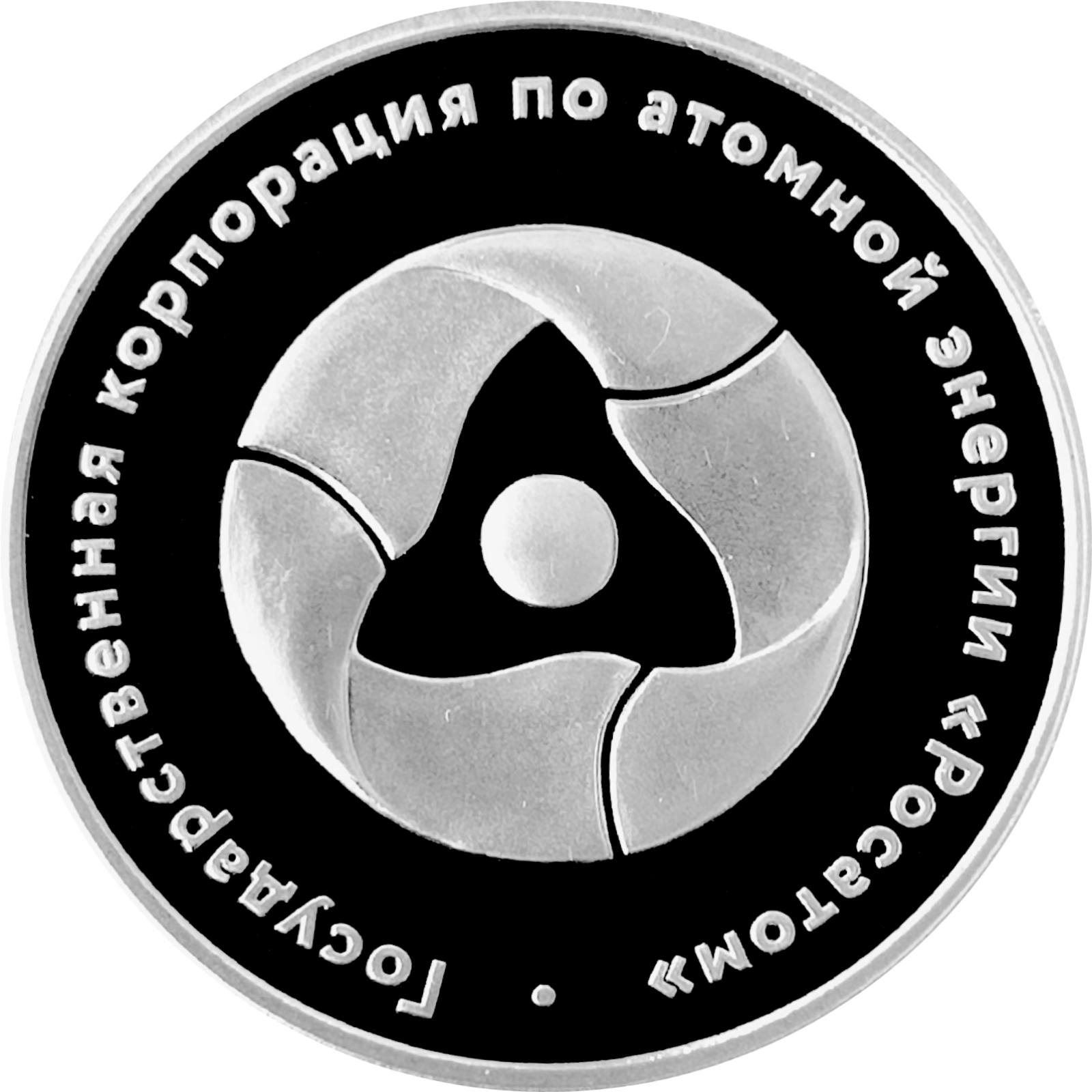 Описание: У центрі — логотип Державної корпорації з атомної енергії «Росатом» та напис по краю медалі.