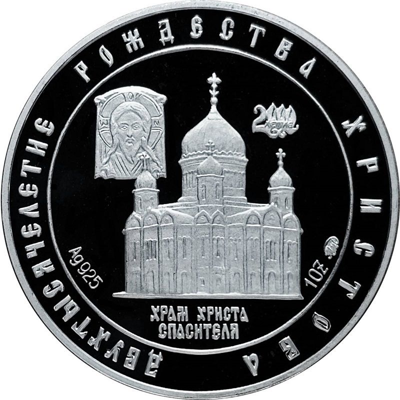 Напис «2000-річчя» знаходиться у верхньому правому куті. Напис «Ag 925» знаходиться у нижньому лівому куті. Напис «1OZ» та штамп монетного двору знаходяться у нижньому правому куті. Напис «Храм Христа Спасителя» знаходиться нижче. По краю кола знаходиться напис «Двотисячоліття Різдва Христового».