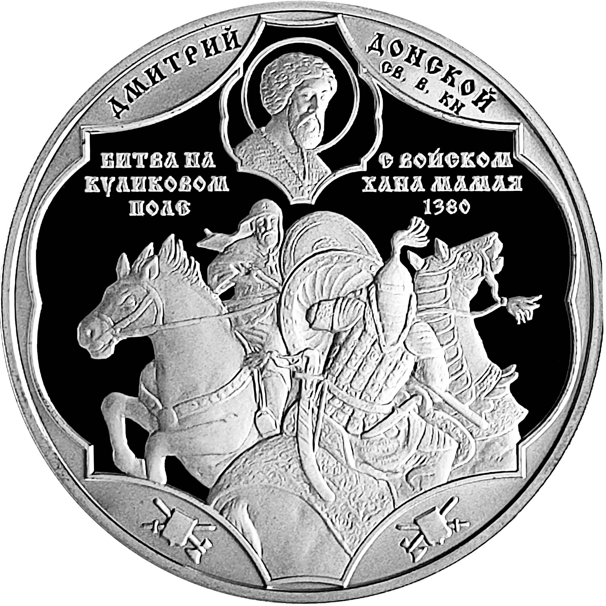 Описание: Зверху зображено портрет святого великого князя Дмитра Донського. Дмитро Донський (1350–1389) — князь Московський, великий князь Володимирський і князь Новгородський. Отримав прізвисько «Донський» за перемогу в Куликовій битві біля річки Дон.