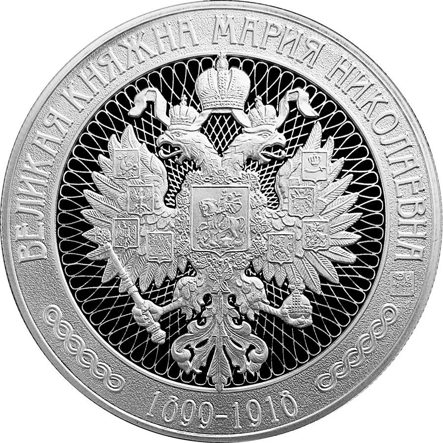 Описание: У центрі — герб Російської імперії на тлі візерунка, виконаного лазерним матуванням. По краю медалі — ім'я члена царської родини та роки його життя.