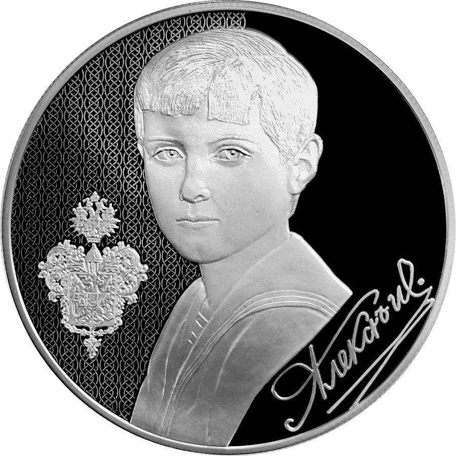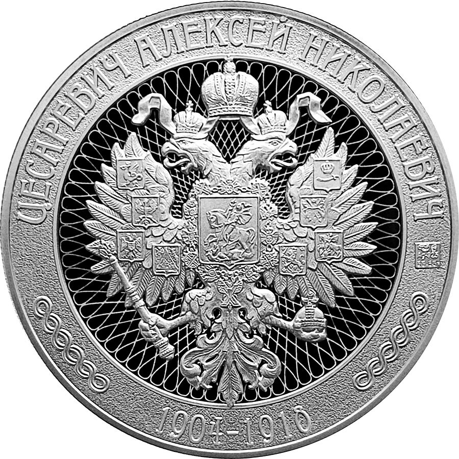Описание: У центрі — герб Російської імперії на тлі візерунка, виконаного лазерним матуванням. По краю медалі — ім'я члена царської родини та роки його життя.