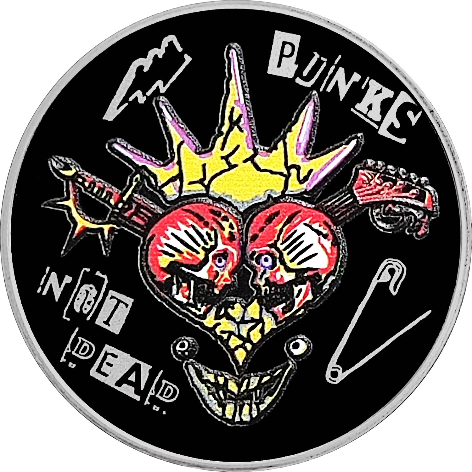 Описание: В центре находится логотип и название группы. Справа — клеймо монетного двора.
