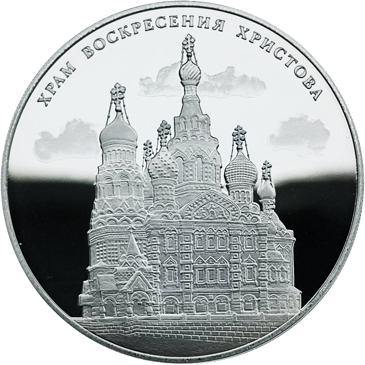 Описание: Рельєфне зображення Храму Воскресіння Христового Спасителя на Крові, побудованого на місці вбивства імператора Олександра II в 1883-1907 роках за рахунок коштів, зібраних по всій Росії. На задньому плані — хмари, створені за допомогою методу лазерного матування.