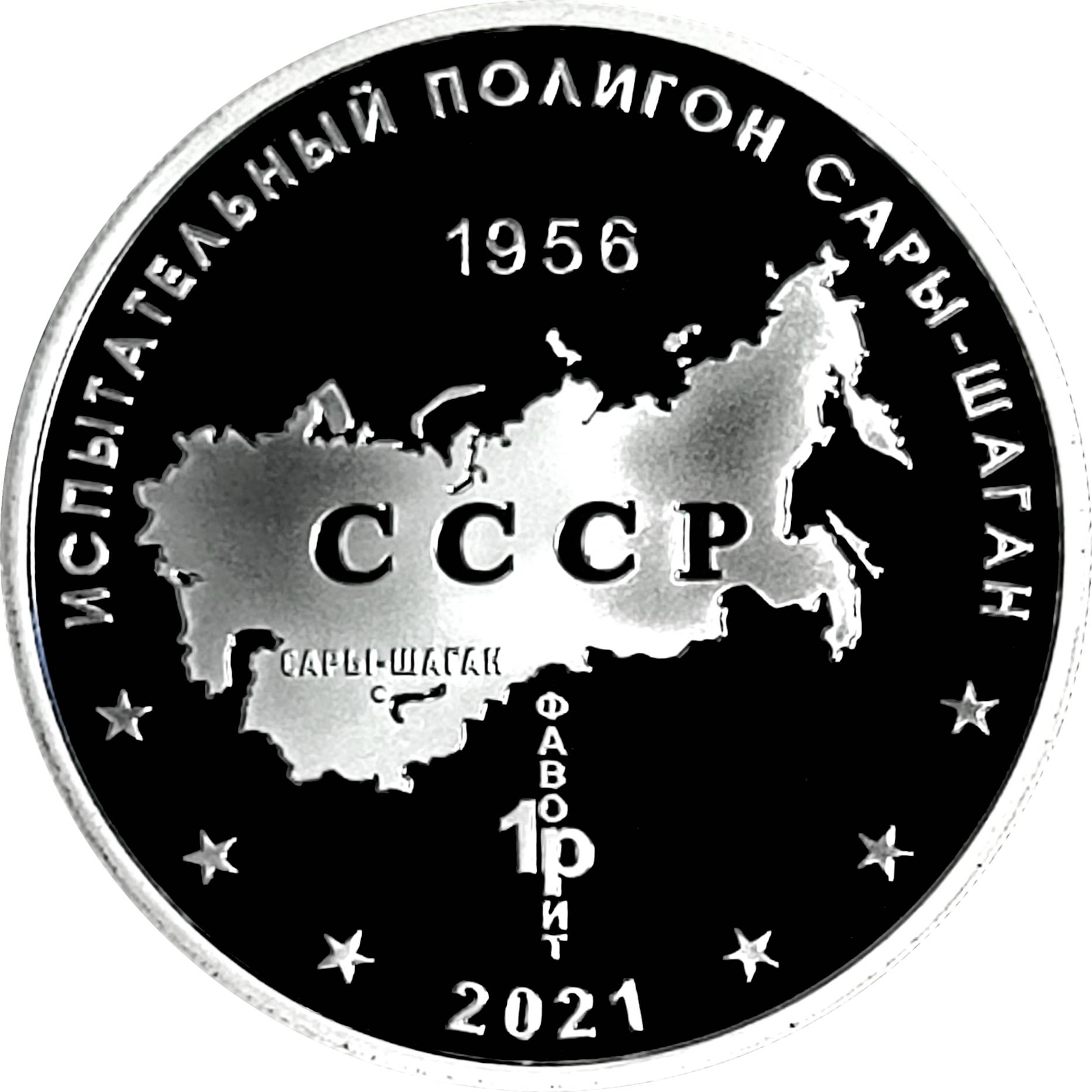 Описание: Карта СРСР, назва випробувального полігону та рік його відкриття, а також рік випуску медалі та напис.