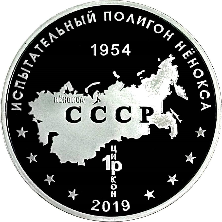 Описание: Карта СРСР, назва випробувального полігону та рік його відкриття, а також рік випуску медалі та напис.