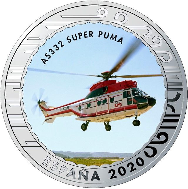 Описание: AS332 Super Puma в кольорі. На зовнішньому кільці геометричні фігури, що символізують форми хмар.
