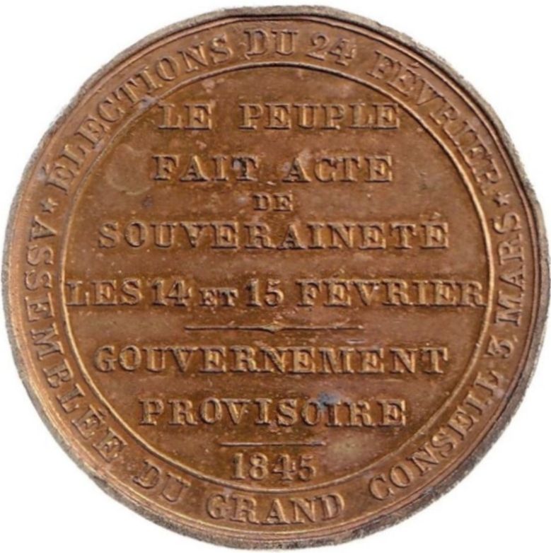 Описание: Герб кантона Во в дубовом венке. Сзади — фасции, увенчанные пернатым головным убором. Лента сверху.