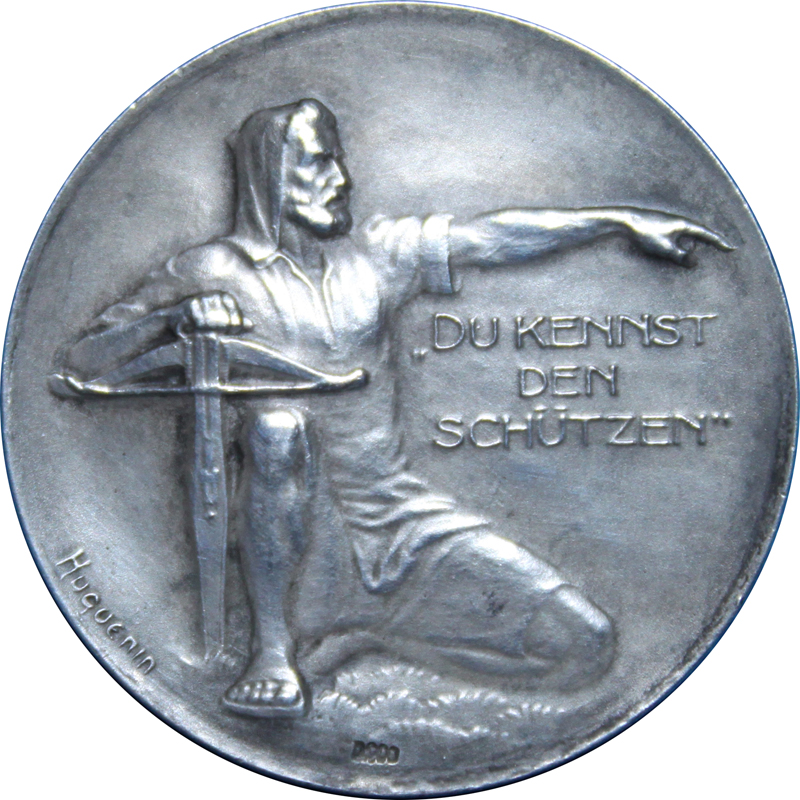 Описание: Изображение птицы в центре медальона с швейцарским крестом за головой. Надпись по периметру. Имя гравера в положении «7 часов».