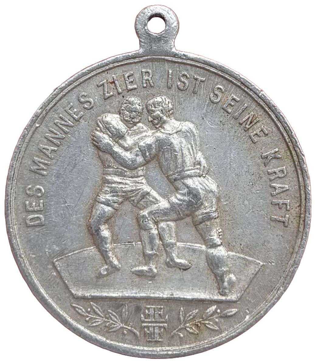 Описание: В центре изображены два борца. Ниже — две лавровые ветви, окружающие монограмму «FF».