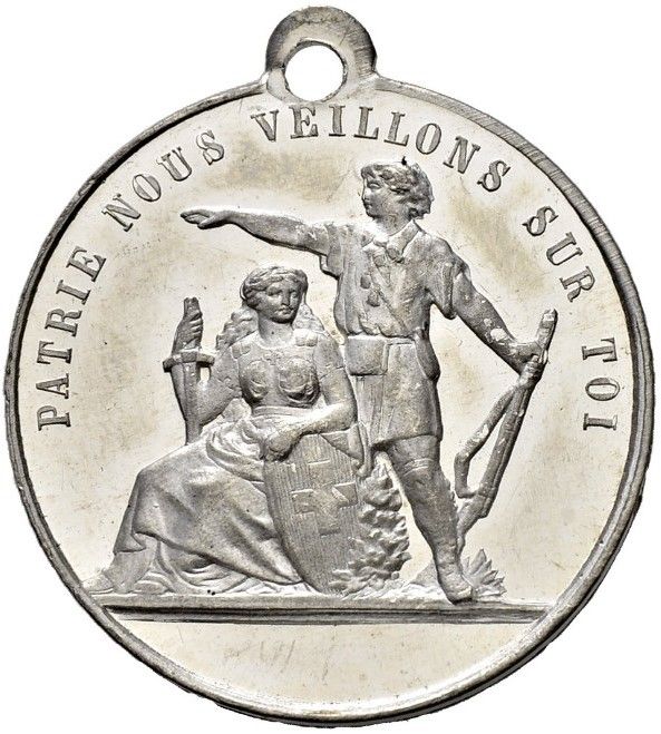 Описание: Молодой стрелок протягивает правую руку над Гельвецией.