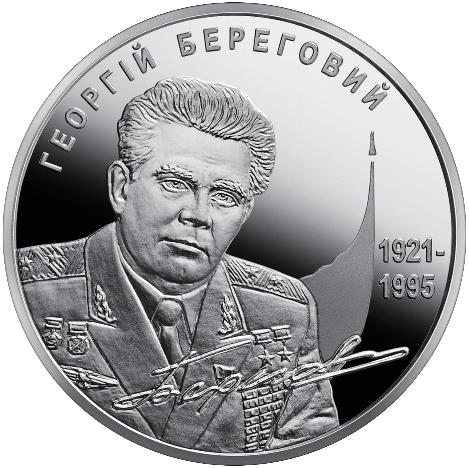 Описание: На фоне портрета изображен портрет Георгия Берегового с его подписью; справа от него — изображение, символизирующее запуск ракеты-носителя, с надписью 1921-/1995 (годы жизни Берегового); выше — полукруглая надпись ГЕОРГІЙ БЕРЕГОВИЙ (Георгий Береговой).
