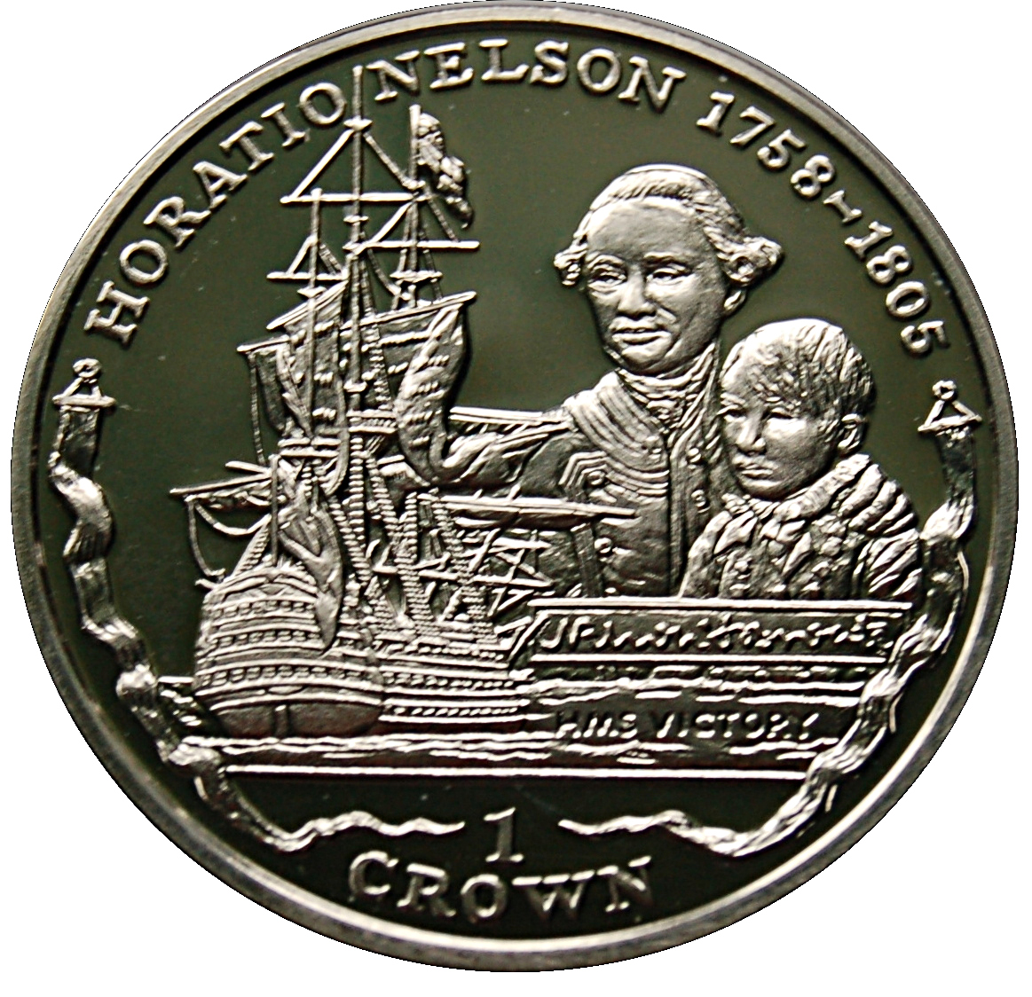 1 крона — Елизавета II (адмирал Нельсон; серебряная пробная монета)