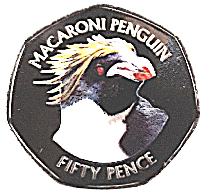Описание: На монете изображен портрет пингвина Макарони в ярких цветах, что действительно подчеркивает самую характерную черту этой породы — золотистые хохолки, которые начинаются в центре лба и затем спускаются над глазами.