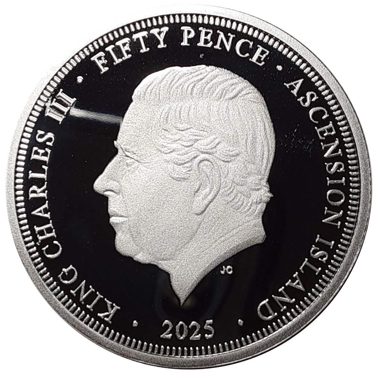 KING CHARLES III . FIFTY PENCE . ASCENSION ISLAND