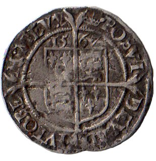 Описание: Внутри внутреннего круга изображен коронованный бюст королевы Елизаветы I, вокруг — надпись.